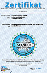 Unsere Dienstleistung und Prozesse wurden erstmals im Jahr 2000 durch den TÜV Nord erfolgreich zertifiziert, und werden seither mehrmals pro Jahr durch interne und externe Audits überprüft.